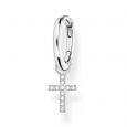 Kusová kruhová náušnice s křížkem se zirkony čiré barvy.