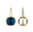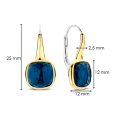Dámské elegantní stříbrné náušnice TI SENTO pozlacené žlutým zlatem se čtvercovým křišťálem tmavě modré barvy.
