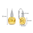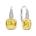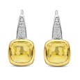 Stříbrné dámské náušnice TI SENTO se žlutým pozlacením zdobí jemně žlutý kámen ve polštářkovém tvaru, doplněný čirými zirkony na zapínání. Teplý zlatý a žlutý odstín vytváří elegantní, zářivý vzhled.