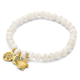 Women's steel bracelet with banded white agate beads and pendants - tree of life and turtle. The steel parts are gilded with yellow gold.