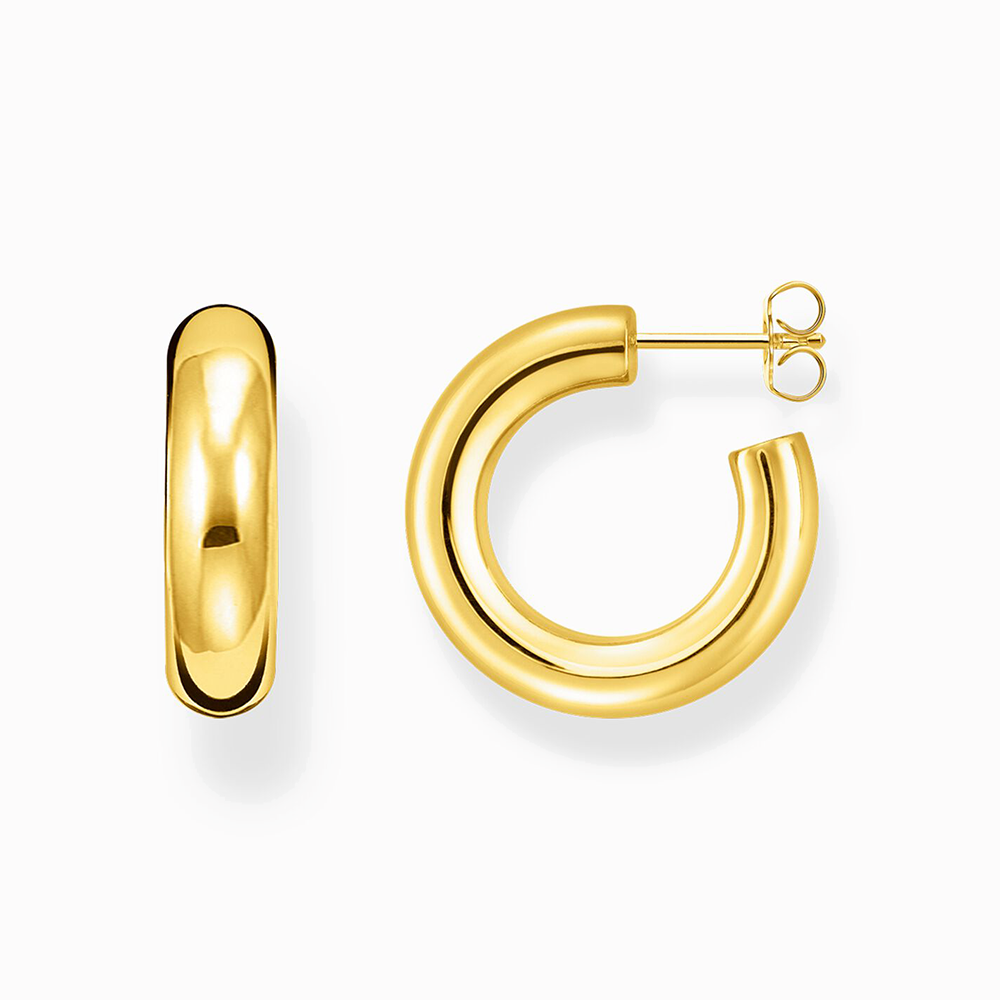 THOMAS SABO women's silver earrings in a classic circle design, gold-plated with 18-karat yellow gold.