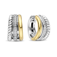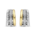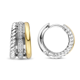 TI SENTO silver women's earrings with yellow gold plating stand out with their sophisticated triple design, which combines a smooth shiny surface, a twisted detail and a strip of clear zircons. The two-tone design in silver and gold looks elegant and timeless.