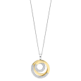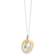 The TI SENTO silver women's necklace with yellow gold plating consists of a pair of intertwined circles, one of which is decorated with clear zircons. The two-tone design in silver and gold gives the jewelry an elegant and timeless character.