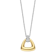 Women's silver necklace TI SENTO with a triangular pendant, which is plated with 14-karat yellow gold and decorated with clear zircons.