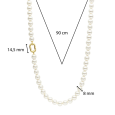 The TI SENTO silver women's necklace with white pearls and yellow gold plating impresses with its elegant long design and distinctive gold-tone clasp. The timeless combination of pearls and gold detail looks luxurious and very feminine.