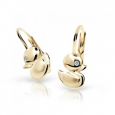 Gyermek fülbevaló sárga 14 karátos aranyból, aranyos kacsa kivitelben, átlátszó cirkóniával díszítve.