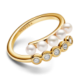 PANDORA aranyozott nyitott gyűrű módosított édesvízi gyöngyökkel és átlátszó cirkonokkal.