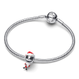 DISNEY x PANDORA ezüst charm, amelyen Jack Skellington látható a Karácsony rémálma című filmből ismert Mikulás jelmezében. A charm fekete kristályokkal és piros, fekete és fehér mázzal díszített.