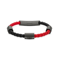 POLICE férfi piros és fekete bőr karkötő Skive sötét acél részekkel.