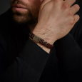 A robusztus textúrájú szőtt bőr egy jellegzetes, mégis kifinomult megjelenésű kiegészítőt alkot. Az acél csat megbízható rögzítést biztosít, a karkötő pedig úgy van kialakítva, hogy mind a mindennapi, mind az elegánsabb öltözékekhez illjen.