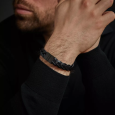 A bőr összefonódása robusztus és jellegzetes megjelenést kölcsönöz a karkötőnek, amely magabiztos, mégis elegáns hatást kelt. A kiváló minőségű bőr a fekete acél csattal kombinálva egy olyan kiegészítőt alkot, amely ellenáll a mindennapi viseletnek, és idővel még karakteresebbé válik.
