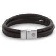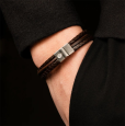 Férfi REBEL & ROSE karkötő sötétbarna bőrből, négy összefonódó pánt kombinációjában, acél csattal kiegészítve.