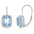 Ezüst fülbevaló átlátszó cirkóniákkal és világoskék cirkóniával díszítve.