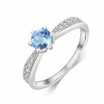 Női ezüst gyűrű közepes világoskék cirkóniával és kisebb átlátszó cirkóniákkal.