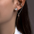 Női ezüst fülbevaló cirkóniákkal és lánccal.