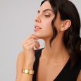 Dámsky pozlátený oceľový náramok BROSWAY Muse tvorí trojica väčších hladkých článkov so zaoblenými hranami. Lesklý povrch a výraznejší tvar pôsobia moderne a elegantne, pričom náramok si zachováva čistú a nadčasovú líniu.