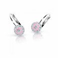 Detské náušnice z bieleho 14 karátového zlata, v milom dizajne kvietku v kruhu, zdobené čírymi a ružovými zirkónmi.