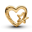 Strieborná PANDORA korálka srdce s hviezdičkou s gravírovaním "MY FAMILY"(Moja rodina) a "MY UNIVERS" (Môj vesmír).