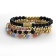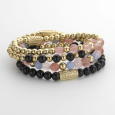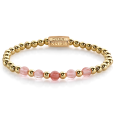 REBEL & ROSE dámsky náramok s kremeňom čerešňovej farby a oceľovými guličkami, ktoré sú pozlátené 18 karátovým žltým zlatom.