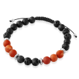Červený jaspis prináša pevnú vôľu, odvahu a vitalitu, lávový kameň uzemňuje, pohlcuje negatívnu energiu a dodáva vnútornú silu – spolu vytvárajú harmonickú kombináciu energie, pokoja a mužskej stability.