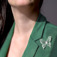 Brošňa pôsobí ľahko a elegantne, vďaka prepracovaným krídlam pripomína jemnú čipku a krásne vynikne ako dominantný trblietavý prvok.