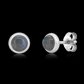 SOFIA strieborné dámske náušnice sú zdobené labradoritom osadeným v hladkej striebornej obrube.