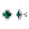 SOFIA strieborné náušnice štvorlístky s malachitom a zirkónmi