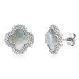 SOFIA strieborné náušnice štvorlístky s perleťou a zirkónmi