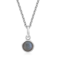 Strieborný dámsky prívesok SOFIA zdobí hladko brúsený labradorit v okrúhlom lôžku, zavesený na elegantnom očku.