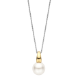Dámsky strieborný prívesok TI SENTO so žltým pozlátením a centrálnou bielou krištáľovou perlou pôsobí veľmi jemne a sofistikovane.