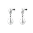BROSWAY women's steel earrings are decorated with a drop-shaped imitation pearl suspended from a smooth, shiny element in a silver tone.