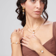 The necklace looks light and modern, making it suitable for both simple and more expressive outfits. It beautifully highlights the neckline and adds a sophisticated, feminine detail to the look.