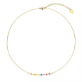Women's necklace with colorful beads. The steel parts are gilded with yellow gold.