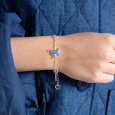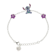 Children's DISNEY silver bracelet with Stitch and flowers with glaze.
