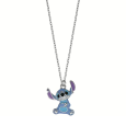 Children's silver DISNEY necklace with Stitch with blue and purple glaze.