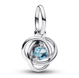 The intertwined circles symbolize eternity. On the back side there is a detail of a heart through which you can see the birth month stone - MARCH.
