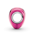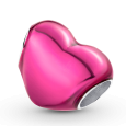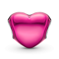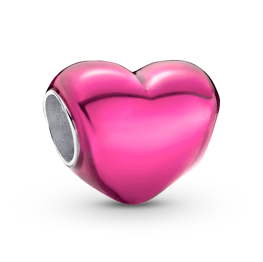 PANDORA silver heart bead with pink metallic glaze. The perfect metallic look is created by applying a transparent pink glaze to the polished surface of silver. Let your love shine.