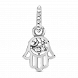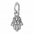 Silver PANDORA hanging bead Hamsa, which is considered a symbol of protection and strength.