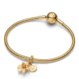 The dazzling and elegant PANDORA Gold Plated collection is crafted from a unique blend of copper and silver and plated with yellow gold . Please note that the subtle colour of jewellery with a high copper content may enhance and slightly tinge with pink over time due to wear.