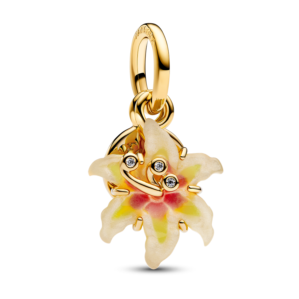 PANDORA Disney gold-plated bead, a flower from the fairy tale "On a String", decorated with clear zircons and glow-in-the-dark glaze.