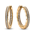 PANDORA gold-plated hoop earrings decorated with clear zircons and on the side with the Pandora logo.