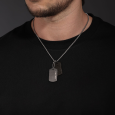POLICE men's dark steel necklace Duet with two plate pendants.