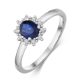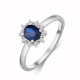 Women's ring in 14k white gold with sapphire and diamond 0.05 ct H/I.