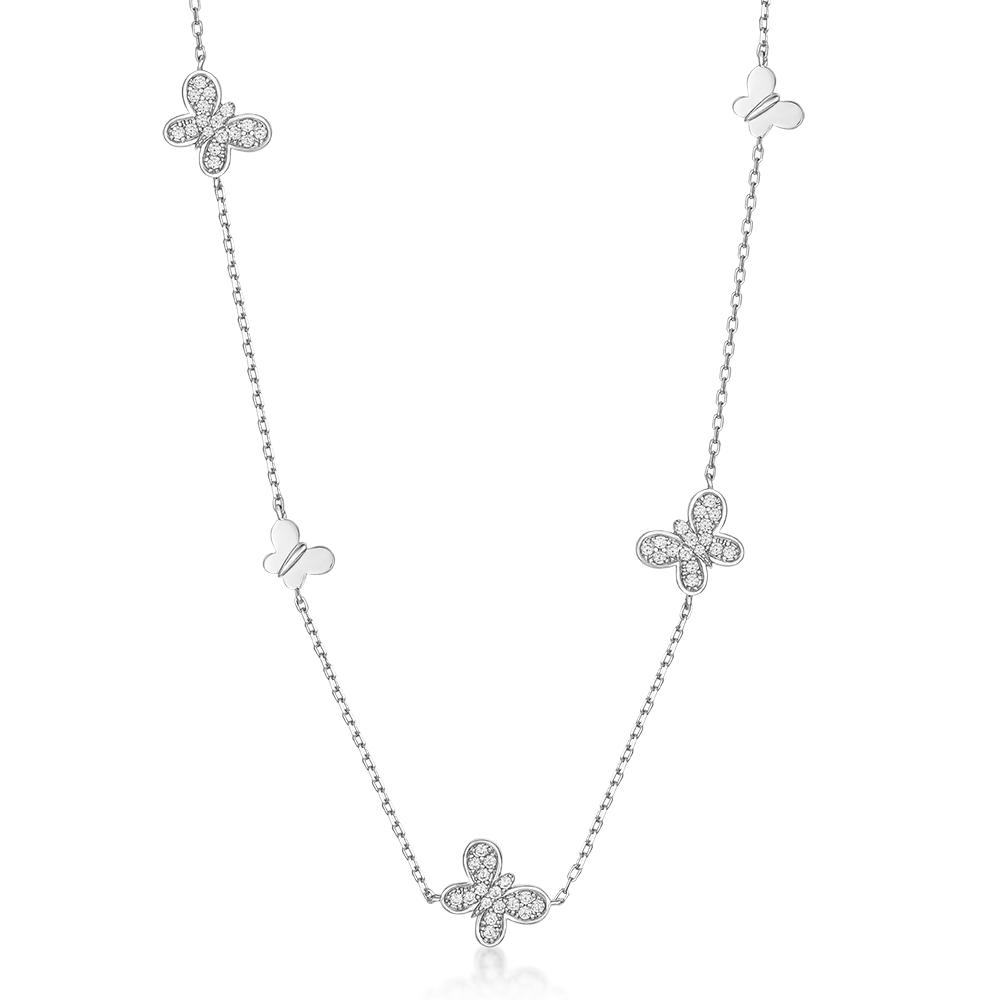 Women's silver necklace with butterflies.