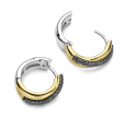 The crisscrossing lines create a plastic effect and add depth to the earrings, while the contrast between the gold tone and the black zircons underlines their graphic character. The subtly shimmering surface of the stones catches the light with every movement and highlights the dynamism of the design. The compact circular shape looks neat and makes this model an ideal accessory for everyday wear and stylish combinations.