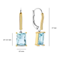 The dominant element is a light blue zircon in a rectangular cut. The precise cutting of the stone allows it to reflect light beautifully, creating a subtle shimmering effect and highlighting its pure color. The combination of a cool blue hue with a gold detail gives the jewelry a fresh, yet elegant character.