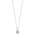 This silver necklace with a zircon pendant is the embodiment of timeless elegance and subtle shine. The dominant feature is a round pendant with a larger central zircon, which is surrounded by a row of smaller stones. This combination creates a beautiful shimmering effect and gives the jewelry depth and expression.