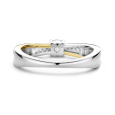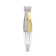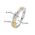 The TI SENTO silver ring with zircons is an elegant piece of jewelry that impresses with its delicate connection of two lines and timeless design. The ring is partially gold-plated, creating a harmonious contrast between the silver and gold tones.
