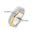 The TI SENTO silver ring with zircons is an elegant piece that impresses with the subtle connection of two lines and the contrast of materials. The ring is partially gold-plated, which gives it a warm touch and emphasizes its modern character.