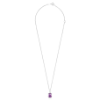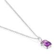 Women's silver TOUS necklace with faceted amethyst teddy bear pendant.